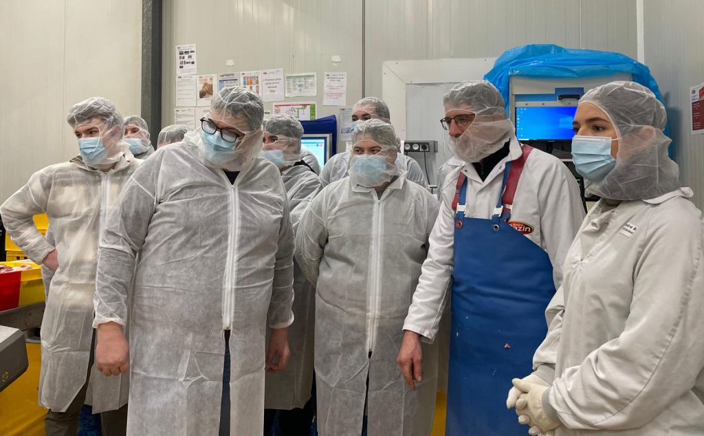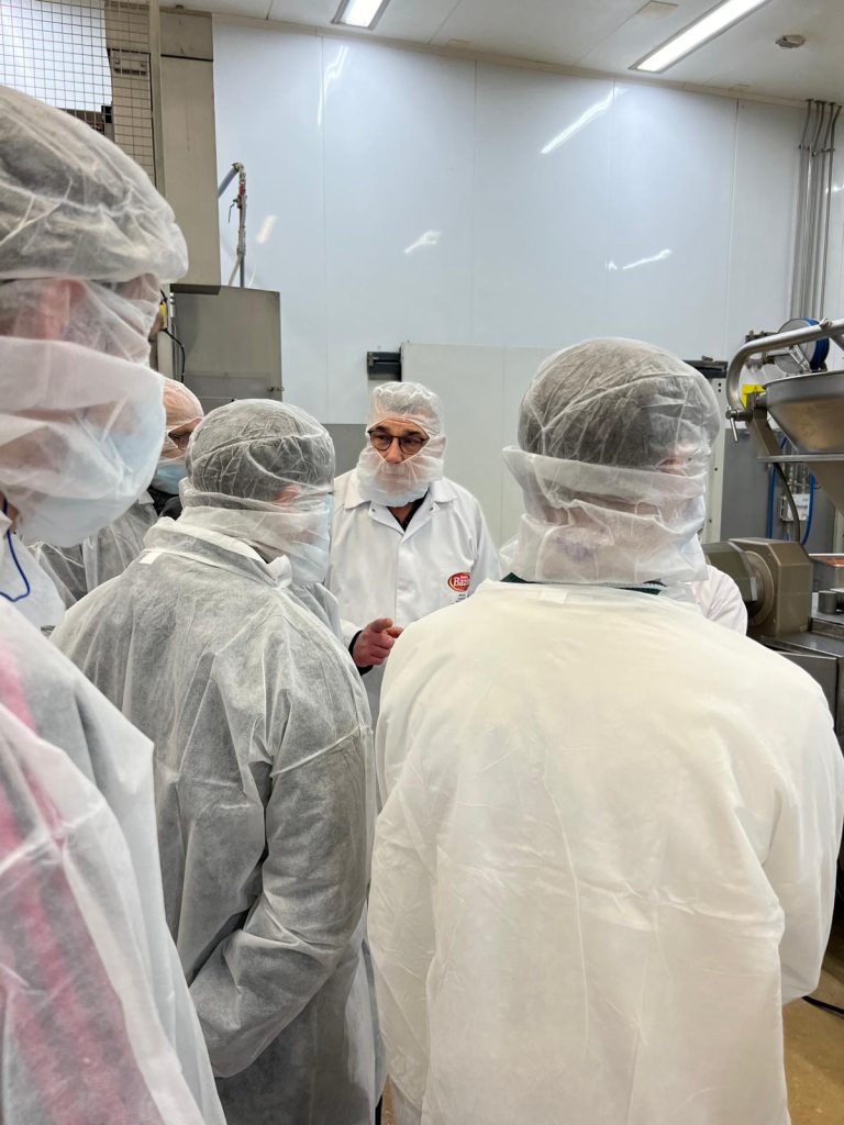 Le groupe a découvert nos ateliers, où tradition artisanale et innovation industrielle se rencontrent pour garantir la qualité de nos produits, échanger avec nos chefs d’atelier et le responsable de production charcuterie, qui a souligné qu’« être charcutier, c’est partir d’une page blanche et transformer son savoir-faire en créations uniques »