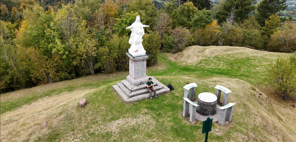 La montée conduit à la Vierge des Neiges, offrant un superbe panorama sur la vallée du Thillot.