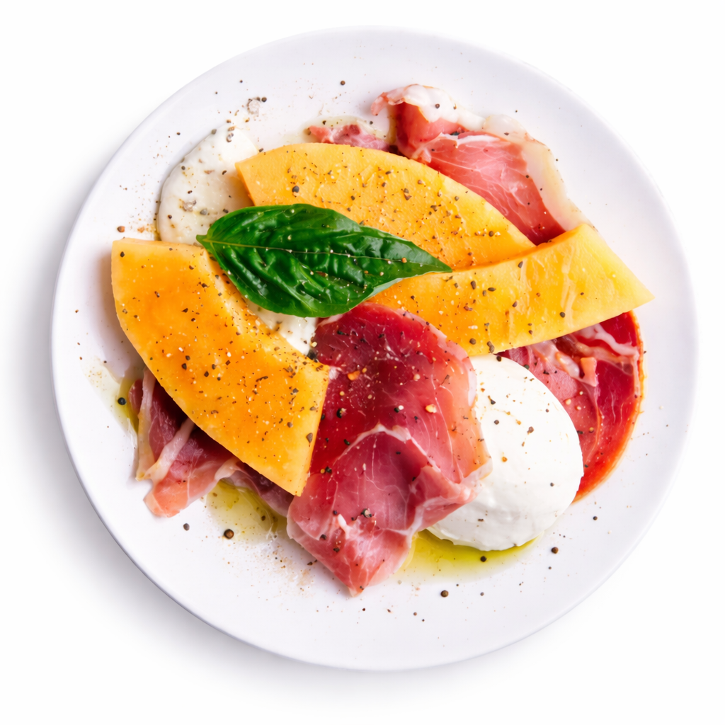 Assiette de Jambon Cru, Melon et Mozzarella