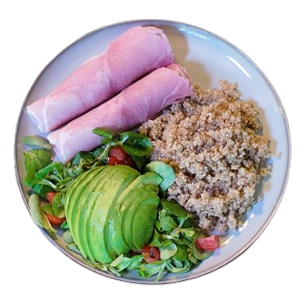 Un bowl frais et complet alliant protéines, légumes et quinoa, idéal pour un repas sain et rapide à préparer.